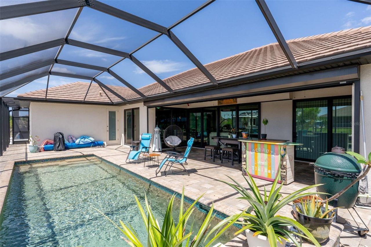 Welcome to 15252 Chinook Way - a Gulf Access SAILBOAT Waterfront Paradise where luxury upgrades, thoughtful design, and true Florida lifestyle come together in perfect harmony. From the moment you arrive, the curb appeal is evident. A circular paver driveway creates a grand and welcoming approach, complemented by tropical landscaping and architectural details like 8' Double Front Doors, Flat Tile Roof and Bimini Shades. This residence features a rare and highly desirable layout with TWO private en-suite bedrooms, offering exceptional flexibility for multi-generational living, hosting guests, or creating a dual-primary retreat. The Great Room with double tray ceilings, Pecky Cypress ceiling, aquarium fireplace, custom hearth, built in book nooks with mood lighting and pocketing sliders provide unobstructed views of the sunny south-facing pool and waterfront. And the Library/Den with French doors and custom built in bookcases provides a private space to work from home. Seamlessly connecting indoor and outdoor spaces to maximize the waterfront lifestyle, the kitchen and main living areas are designed for both everyday living and entertaining! The grande center island with Jenn Air Radiant Glass cooktop with drawn down exhaust and pendant lighting serves as a chef's invitation to gather and enjoy delicious family meals. Stainless Appliances including new (2025) Energy Star smart dishwasher, Wall Oven and Microwave, Fridge with coffee station / buffet, Granite counters, and quality cabinetry with dovetail soft close doors and drawers, 42 uppers cabinets, brick tile backsplash and farmhouse sink ensure entertaining is a breeze. The primary suite serves as a peaceful retreat, with tray ceiling, ceiling fan, 18,000 BTU mini split AC, sliders to Lanai, and two walk in closets with organizers. You'll notice the extended bathroom features a free standing tub, separate vanities, roman shower with niche and bench seating and separate water closet. On the opposite side, there are two guest rooms and two full baths with pocket door for added privacy. The 'in-law suite has a private entrance with walk in closet, full bathroom, and paver walk around to driveway. And the Guest bedroom (craft room) shares the Hall / Pool bathroom. Step outside and discover your Gulf Access waterfront oasis with NO fixed bridges, featuring a 10x16 boat dock concrete seawall, paver patio, 10,000 lb boat lift and maintenance free yard with curbing and decorative stone. Whether you're heading to Charlotte Harbor, cruising toward the Gulf of Mexico, or spending the day at Boca Grande-renowned for its world-class beaches, tarpon fishing, and charming island atmosphere-this location places you at the center of it all. Back at home, enjoy peaceful waterfront views, where fish and wildlife abound, or unwind with a sunset over the canal-this is the essence of coastal living.Other features include hurricane windows, doors, and sliders, manual pull down front door shutter, electric kevlar screen for Lanai, garage workshop bay with Amana 24,000 BTU soft-start Mini Split AC, 8' overhead doors, pull down attic stairs, 50 AMP service for generator.. Located in the desirable South Gulf Cove community, residents enjoy access to over 50 miles of navigable waterways, parks, and a true boating lifestyle that is second to none. This is more than just a home-it's a lifestyle opportunity. 1 YEAR HOME WARRANTY AVAILABLE! Call today!