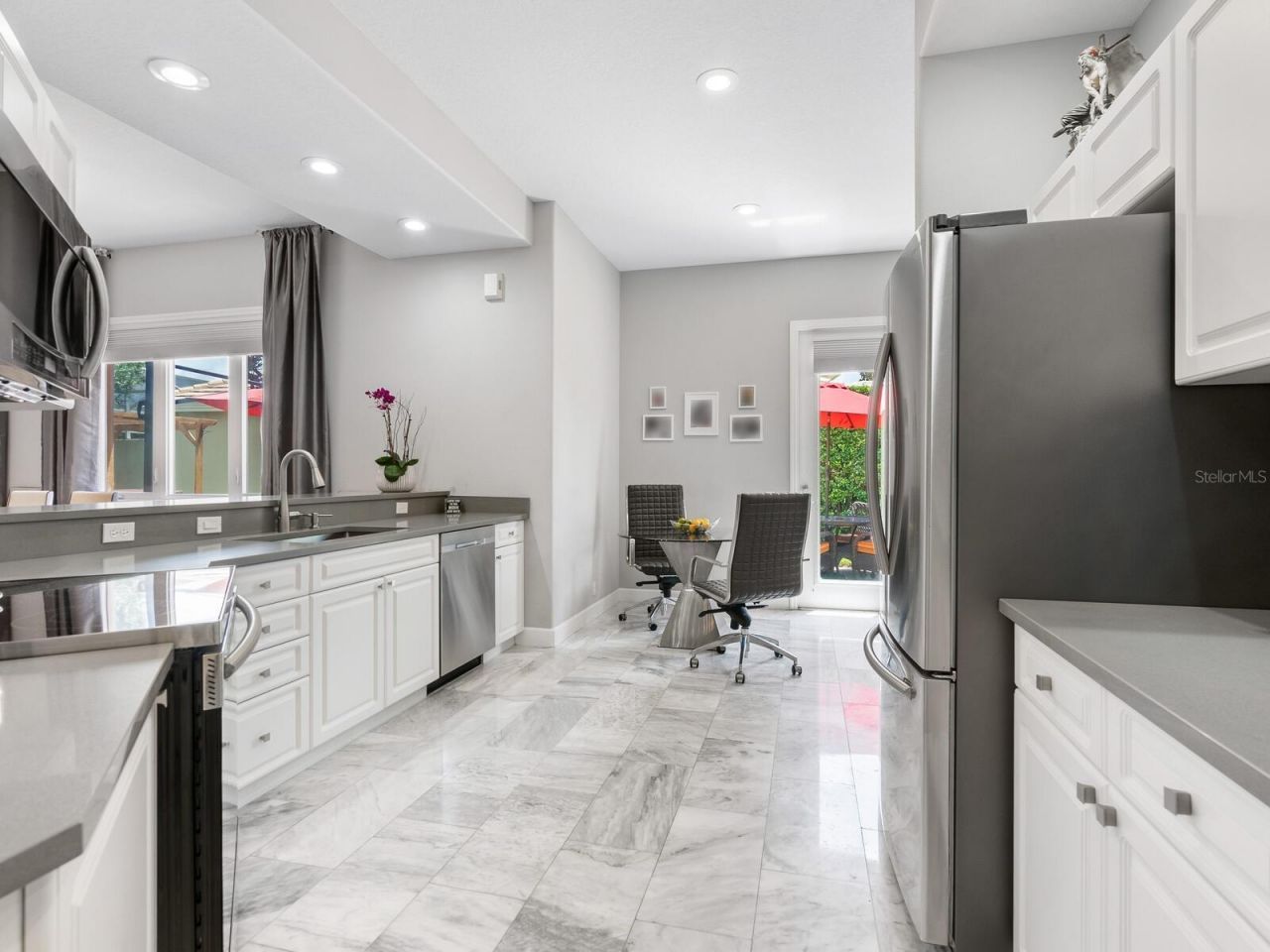 Looking to be wowed? Welcome to the Highlands inside of Rosedale. Fully remodeled, meticulously maintained beautiful two-bedroom plus den maintenance-free home with an open floor plan. From the moment you walk in, you will be met with beautiful marble floors throughout the entire home bringing your eyes to the stacked featured wall in the family room with fireplace. The kitchen is spacious with quartz countertops and a breakfast nook. The dining room and family room flow naturally off the kitchen for fabulous entertaining. Enjoy the spacious primary bedroom with a remodeled bath again with quartz countertops, double vanity, and a spa-like walk-in shower with tile to the top of a 10-foot ceiling. The den has marble flooring with a stylish Murphy bed. The bedroom and guestroom boast industrial carpeting for wonderful long-term use. Outside, you will be met with a pavered oasis, including a hot tub and lounging areas that are private, quiet and serene. This home sits on an oversized corner lot and included in your HOA is exterior and ground maintenance painting of your home every eight years, cleaning of your roof, mulching twice a year, tree trimming of trees and pest control to name a few. ANEW TILE ROOF WAS INSTALLED IN 2024!!! This is a must-see home, modern with attention to detail. No work needs to be done. Just bring your toothbrush and you will be proud to call it home! Rosedale is an outstanding gated, amenity-rich community, including tennis, golf, community pool, fitness and recreation center with active social calendars. Added benefit of a golf membership is not mandatory. $175,000 assumable mortgage at 2.78%. Some furnishings may be available under separate bill of sale. Make your appointment today.